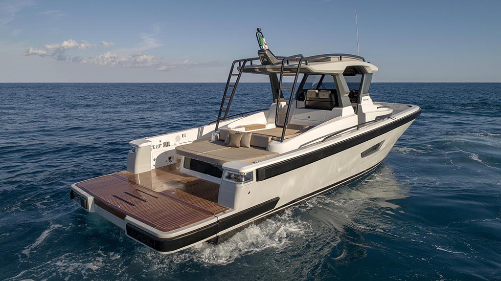 Outside shower, Teak deck, Hydaulic bathing platform.